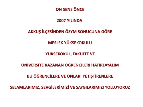Ösym sonuçlarına göre Üniversite, Yüksek Okul ve Meslek Yüksekokulu Kazanan Akkuşlu Öğrenciler
