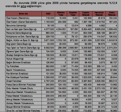 2009 yılında Akkuş MYO için Ayrılan Ödenek, 23.500, eklenen ek ödenek olmamış, ancak 19.500 ödenekten düşülmüş, geriye 4.000 kalmış. Bu miktarın 473'ü harcanmış. Geriye 3.527 TL kalmış ödenek olarak. Şimdi bu durumu açıklamak, okumak ve anlamak herhalde konu ile yakından ilgilenen yetkili kişilerin işi olsa gerek.
