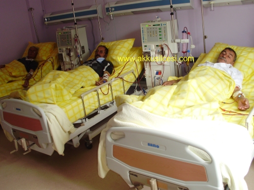 " Bu gün bizim sevinçli günümüz. Tamam tedavi görüyoruz ama fotoğrafta iyi çıkalım. Hastane Müdürüm Benim Yatağımı az kaldırmalarını söylermisiniz. Bu gün bizim dik durma. gurur günümüz. Sizlerde bizlerde bu hizmetin buraya gelmesi için çok uğraştık. Ben yıllarca bu çalışmayı takip ediyorum. Yeri geldi Ankara’a yeri geldi Ordu’ya çok gittik. Sıkıntılarımızı anlattık. Çok şükür ki şu anda kendi doğduğumuz yerde tedavi görüyoruz. bundan büyük gurur olur mu? İhsan bey, yatağımı biraz baş kısımdan kaldırdılar. Şimdi resmimi çekebilirsin. Bir konuyu daha açıklamak istiyorum ki. Artık İstanbul’a dönmeyecem. Akkuş’ta kalacam. Burada Diyaliz Ünitesi olduktan sonra benim İstanbul’da işim ne, bende emeği geçen herkese çok teşekkür ediyorum. Hepsinden Allah Razı Olsun. İlçemizin gözbebeği Akkuş İnternet Sitesinin de bu mutlu gümüzde bizi yanlız bırakmadığı için İhsan beyin Şahsına ve site ekibine de teşekkür ediyoruz."