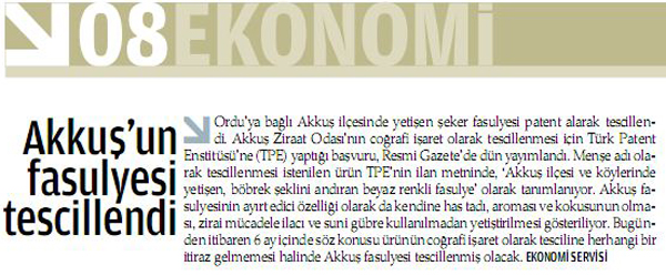 Akkuş Kuru Fasülyesi Zaman Gazetesinde 27 Temmuz 2011 1 231 İlçemizin gururu Akkuş Furu Fasülyesi Zaman Gazetesi'inin 25.07.2011 tarihli ekinde gündeme geldi.