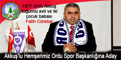 Bank Asya 1. Lig’de mücadele eden Orduspor’da, iş adamı Fatih Cürebal başkanlık için adaylığını açıkladı.