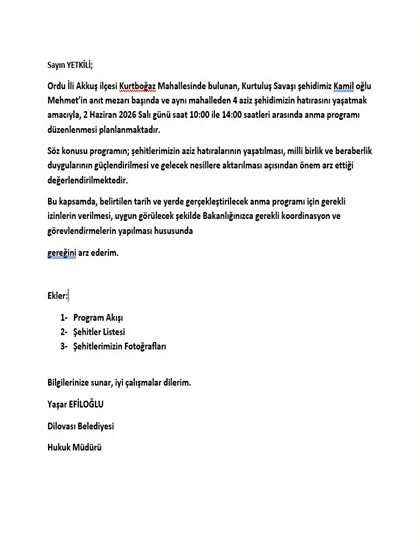 Akkuş İlçesi Kurtboğaz Mahallesi Şehitlerine Anıyor (02.06.2026)