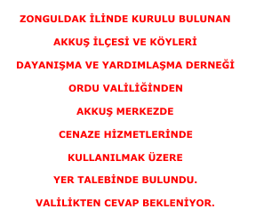 Zonguldak’daki Akkuş Derneği Yönetimi Tarafından; Ordu Valiliğinden Akkuş İlçesinde Cenaze Hizmetlerinde...