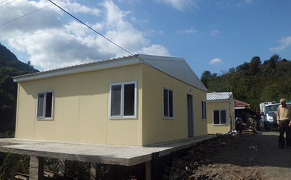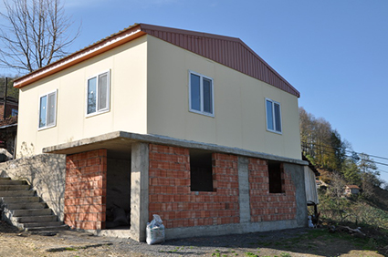 on üç aileye prefabrik ev verildi