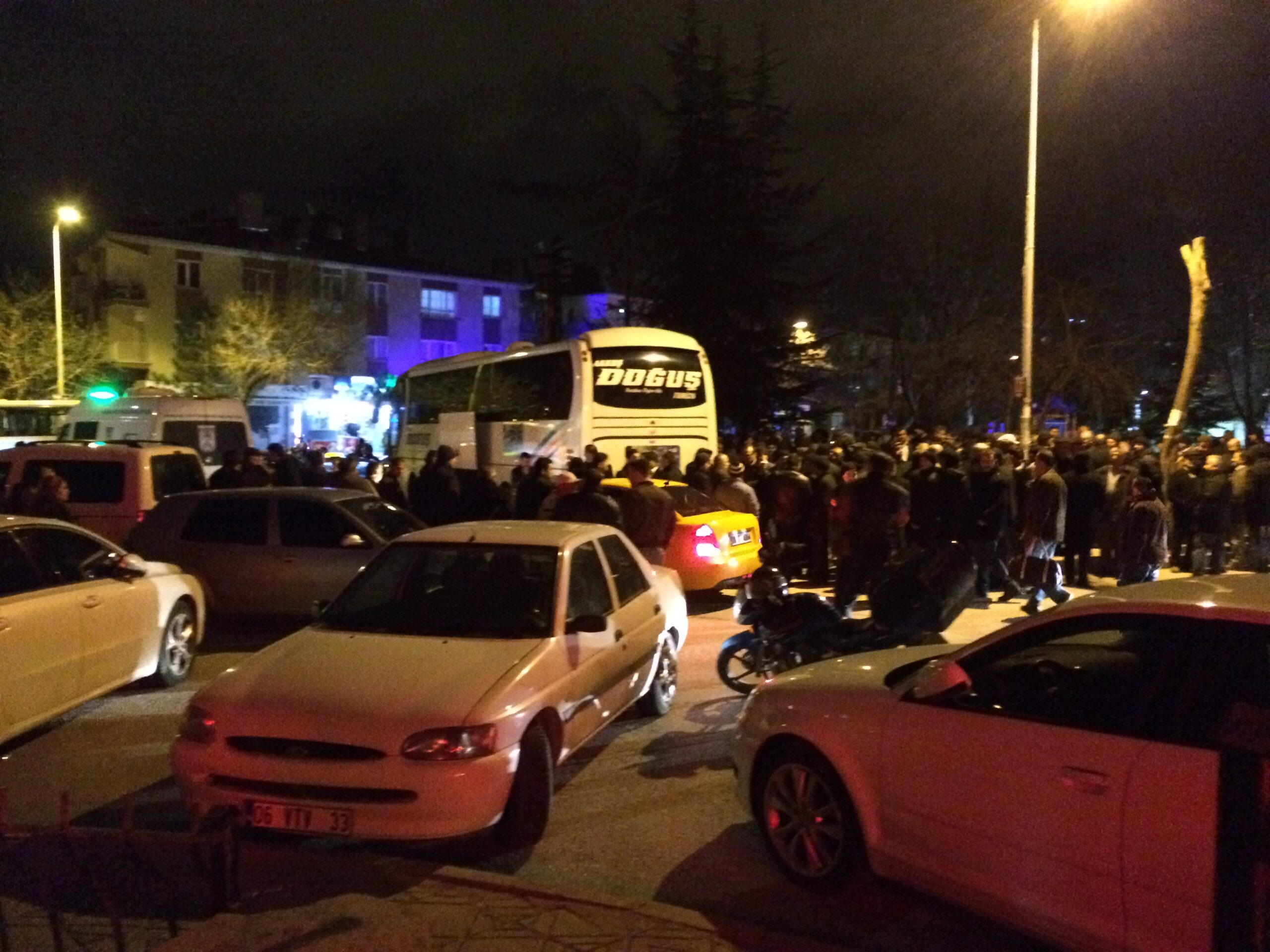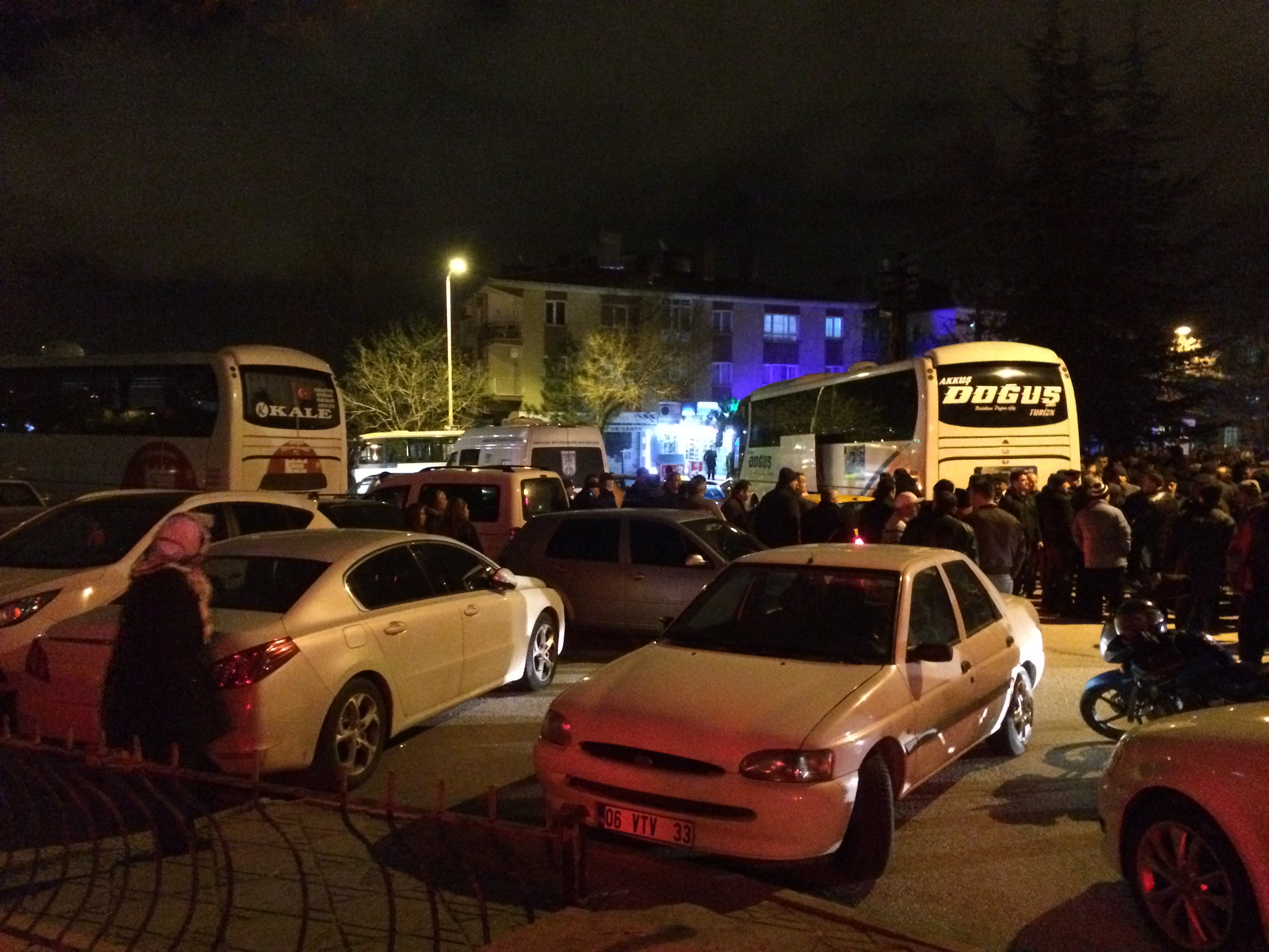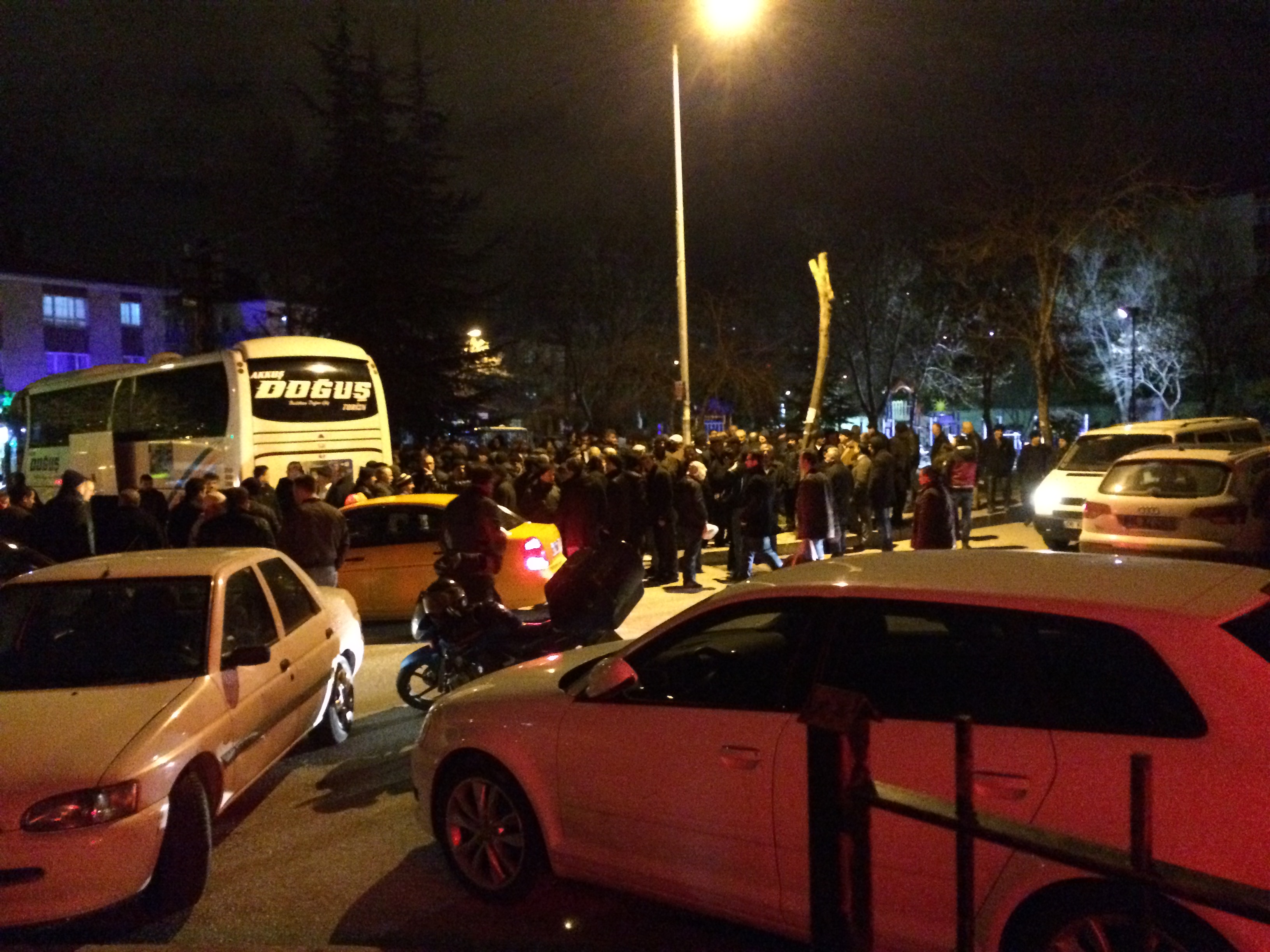 Ama havanın soğuk olması ve gece olması çok önemli değil. Akkuşlular hemşehrilerine son görevlerini yapmak için akın akın gelmişler cenaze uğurlamaya.