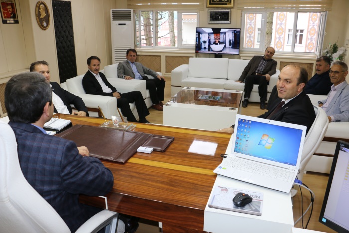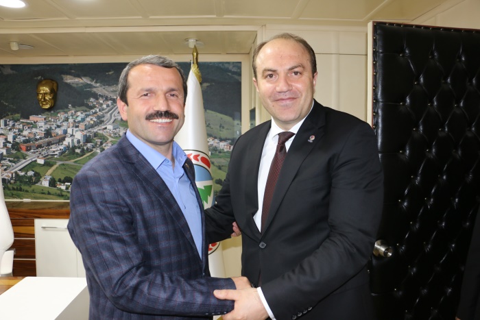 Beraberinde Şube Müdürleri Murat Emuce, Fatih Şahin, Aziz Erdoğan ve Suat Ayaz ile ilçeye gelen Ordu Gençlik Hizmetleri ve Spor İl Müdürü Mustafa Genç ilk olarak Belediye Başkanı İsa Demirci'yi makamında ziyaret etti.