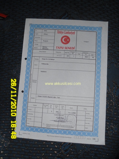 TAPU KADASTRO MASRAFLARI DEVLET TARAFINDAN KARŞILANMIŞTIR.