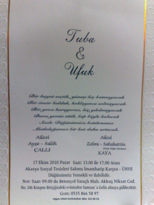 sevgili kardeşim SALİH ÇALLI’NIN kızı canım yeğenim Tuba ve Ufuğun ömür boyu mutlu olmalarını yüce ALLAH’DAN dilerim.HALAN İLKNUR ÇALLI